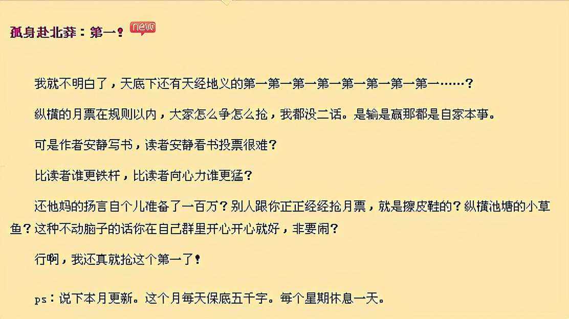 而发帖的原因,是因为烽火的《雪中悍刀行》,正在和他的《星河大帝》争夺榜一的位置。