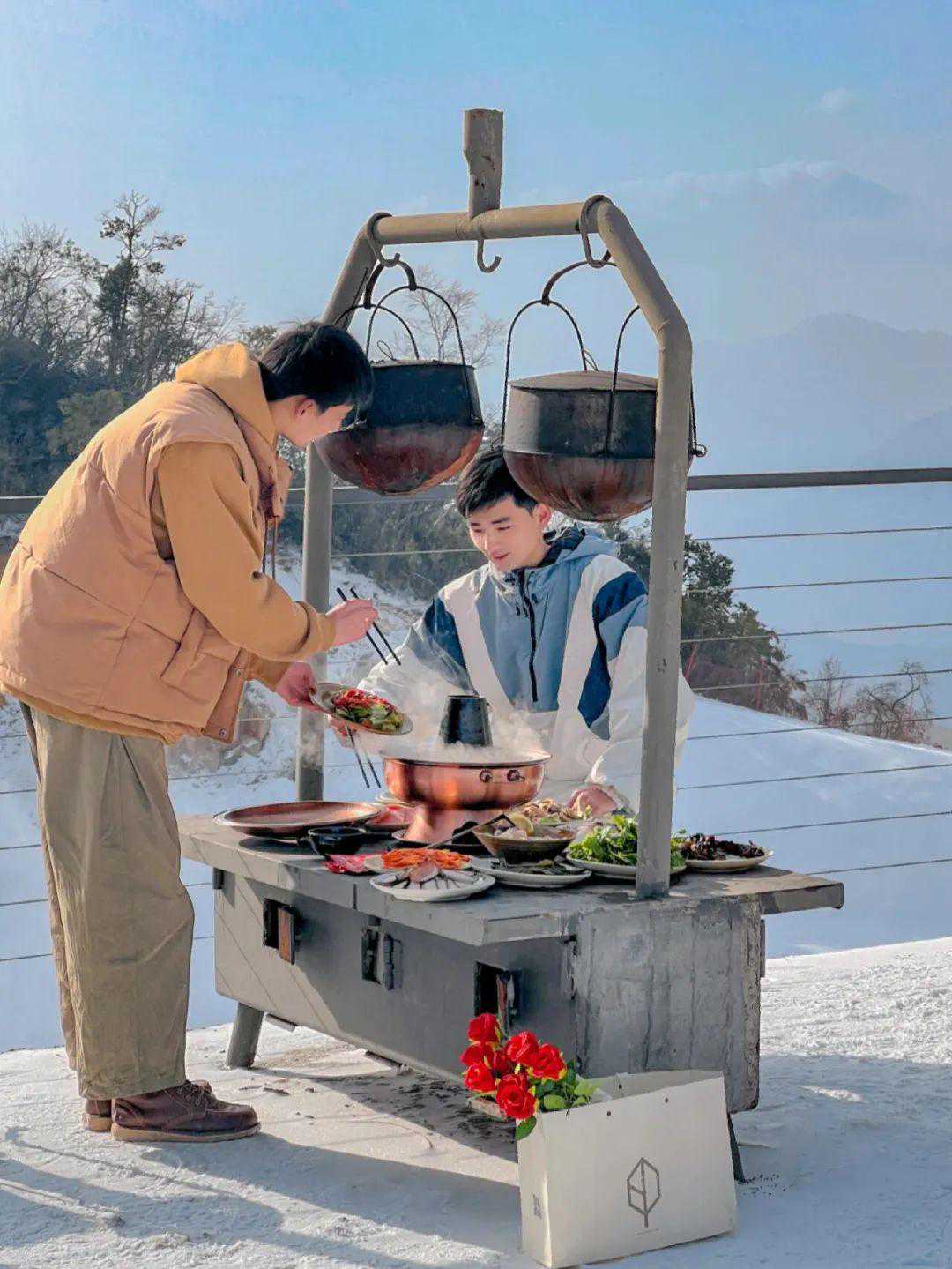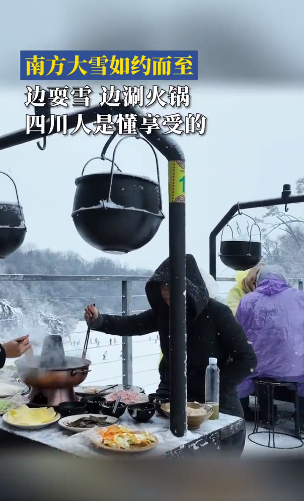绵阳直接把豌豆尖和火锅搬到雪地里
