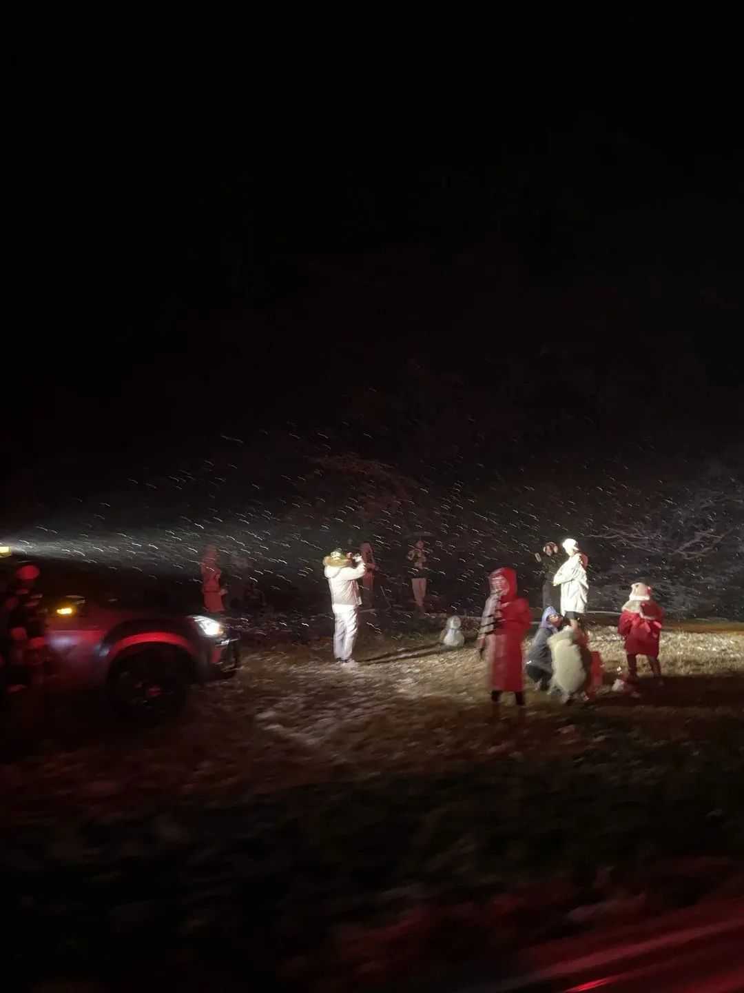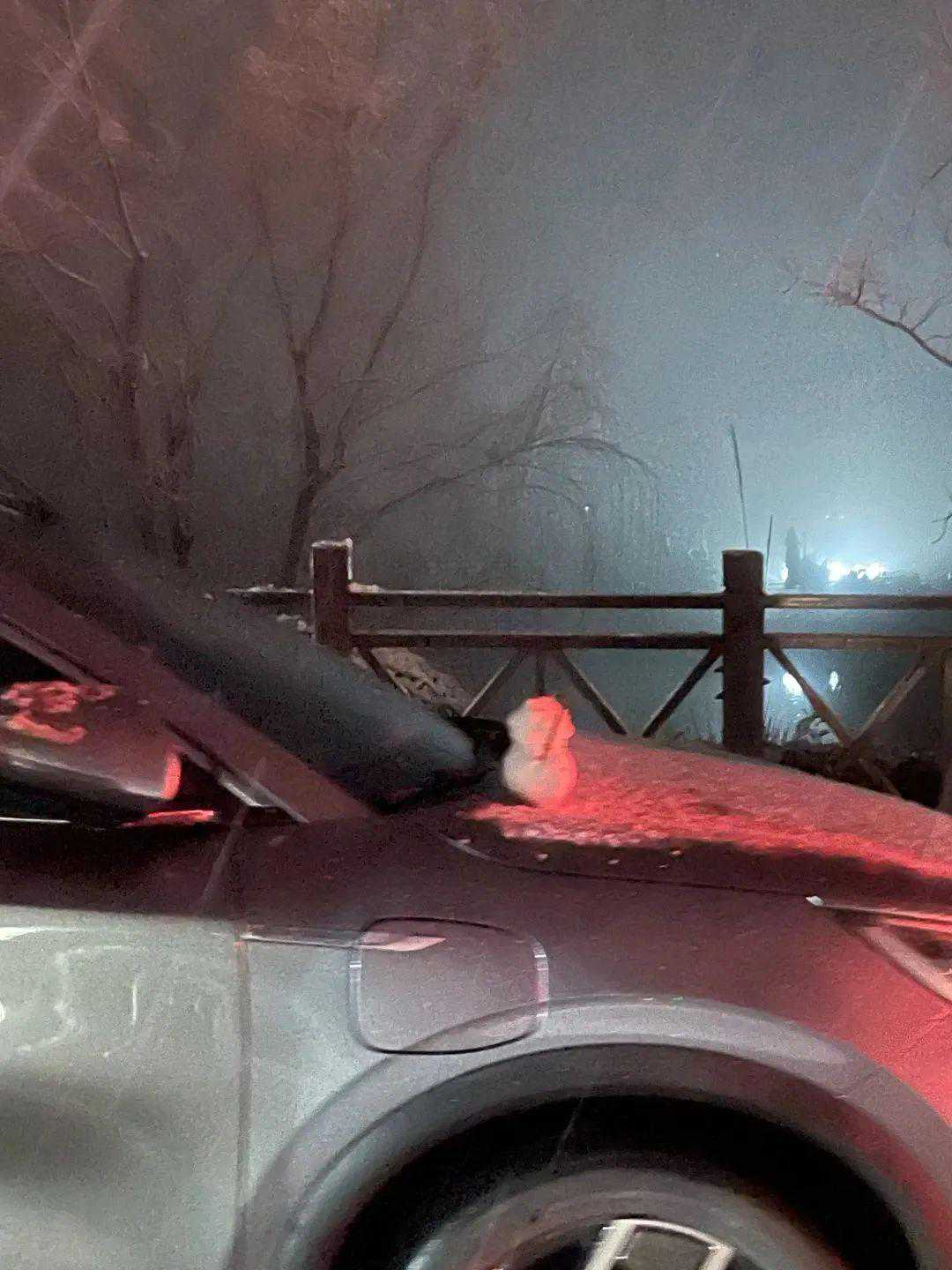 昨晚的龙泉山红成一片,返程的车每辆都要带走一个小雪人。(温馨提示:不要让可爱雪人遮挡了行车视线哟,注意行车安全~)