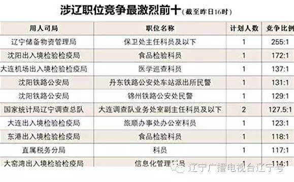 涉辽前十热门岗均超百里挑一现在各职位竞争激烈程度也随着报名人数的增加逐渐升温