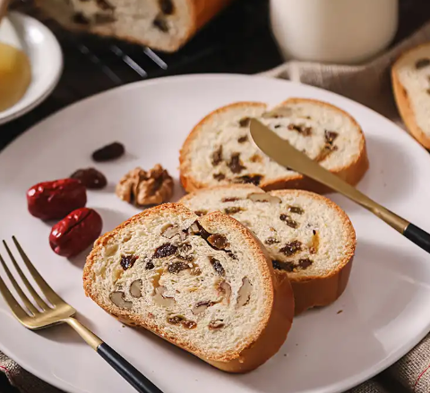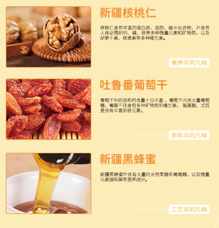 首先,这是一种俄罗斯风味的美食,后来进入新疆,经过几代人的传承,变成了具有新疆特色的大列巴,在这里用的是天山的牛奶和面粉,吐鲁番的葡萄干,阿克苏的核桃,还有黑蜂蜜,食材很丰富。