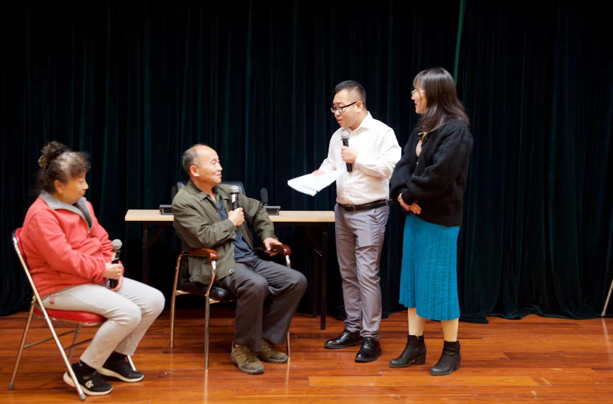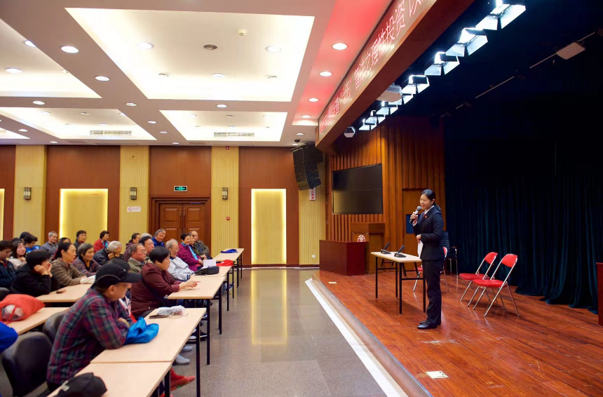 一位大妈质疑:“闺女,你是不是托儿啊?”“销售经理”和“托儿”坚称互不认识,劝说老人将住房和存款拿来投资:“房子可不是押给我们,房子正常住、保健品正常吃,就能够赚到钱。我们项目是公益性质的,只面向有困难的老年人,名额极其有限……”“天上不会掉馅饼。”台上的两位大妈最终拒绝了投资的项目。当一个小情景剧落幕,台下气氛正热烈的时候,金薇法官以法官形象亮相,结合真实案例向老年人传授如何防范投资理财的陷阱,如何维权的相关知识。