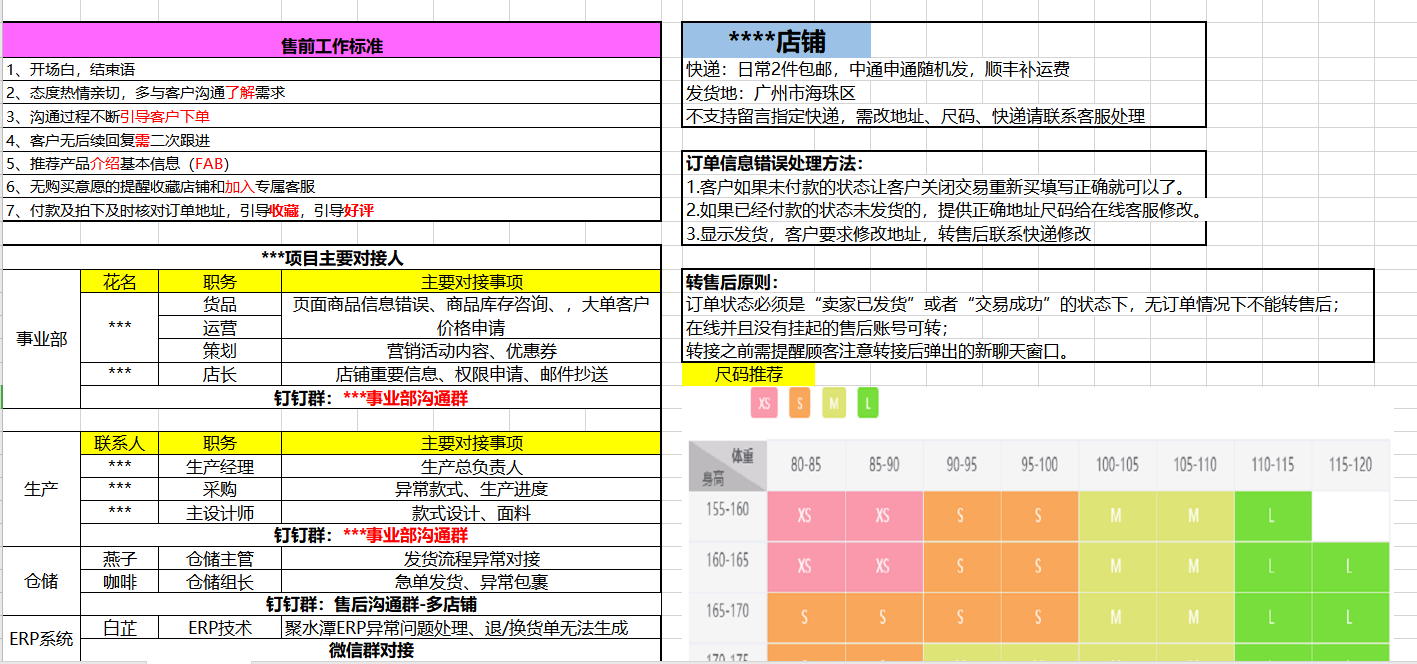 可用可乐老师提供的客服手册做参考。为客服提供了标准化的接待流程,明确项目的对接人,确保在遇到对应的问题时能最快找到相关负责的人。