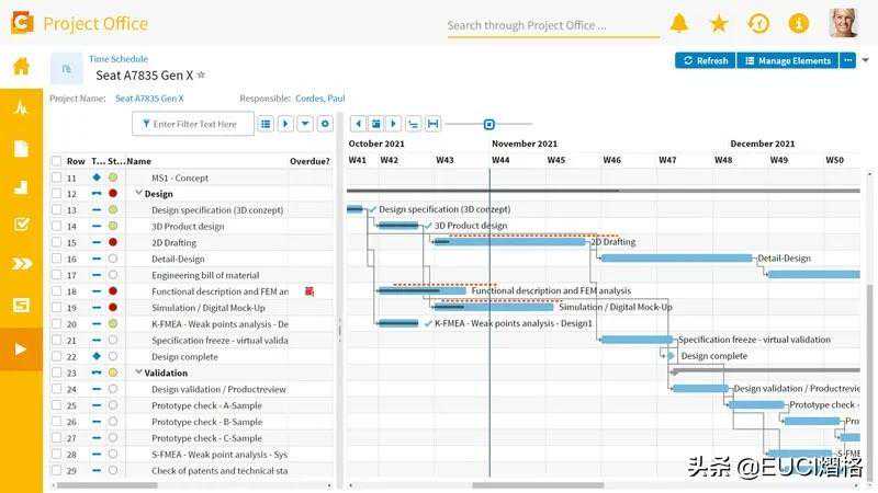 有效计划和预期可实现日期之间的差异在甘特图中突出显示。因此,项目经理可以识别计划中和正在进行的项目中的潜在冲突,并在早期采取预防措施。