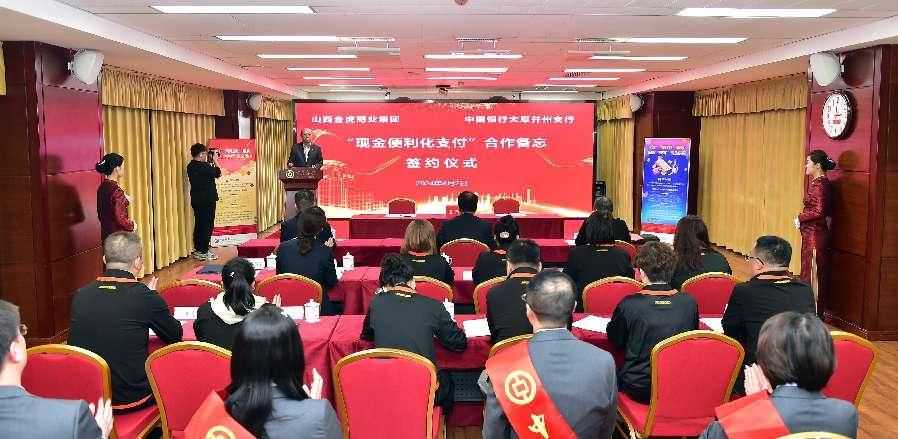 4月2日下午,中国银行太原并州支行与山西金虎商业集团股份有限公司开展“现金便利化支付”合作备忘签约活动,中国银行山西省分行副行长王智勇,中国人民银行货币金银处处长许静、山西金虎商业集团财务副总监赵基海出席活动。