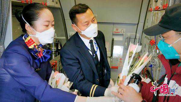 国航把地面上的周到服务,延伸到了空中,在平飞万米高空,CA044航班机长表达了国航人对白衣战士的敬意: