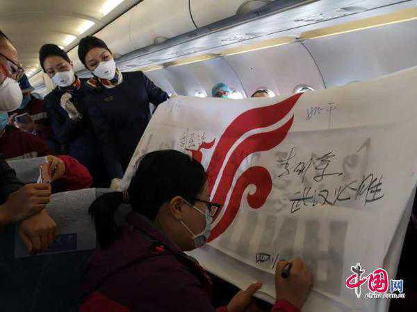 当一面国旗在客舱内展开时,全舱激动起来,纷纷合影,并在一面国航司旗上签名。一位来自四川眉山的白衣天使对乘务员说:“今天是我支援湖北的第38天,同时,今天也是我爱人的生日,在我们相识的12年里,今天是最特别的日子,在他36岁时,我恰好完成抗疫任务回到家乡,我想这是给他的最好的生日礼物。虽然我还要隔离14天,但距离我们小家团圆的日子越来越近了,也期盼着全国战胜疫情的日子快快到来。”虽然,这位白衣天使说话时戴着口罩,但眼神透出的是一往无前的坚毅和舍小家为大家的决心。