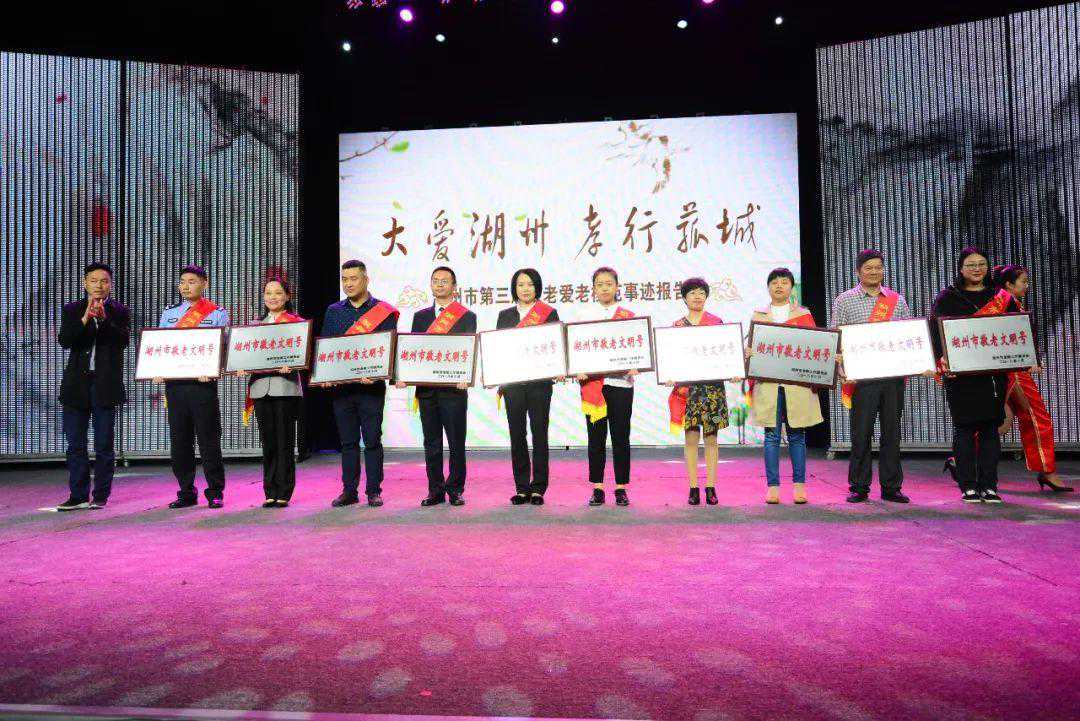 现场播放湖州市社会养老服务体系建设成果宣传片,并为获得“湖州市敬老文明号”、“湖州十大孝贤”和首届“湖州最美养老护理员”的单位和个人颁奖。