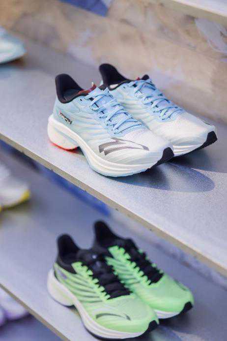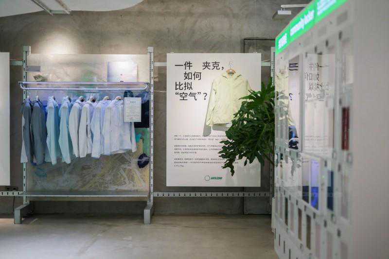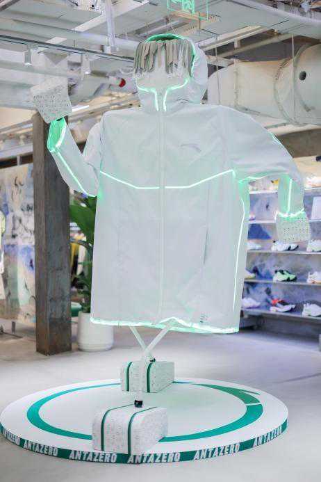店内精选符合安踏可持续规范的商品带给消费者,其中最新上市的产品“空气甲”夹克与“马赫4代”跑鞋亦进行了碳足迹的盘查计算与碳中和认证。以“空气甲”为例,从设计层面使用再生材料,到生产阶段大量使用清洁能源,此产品已经实现了11%的减排。