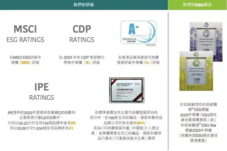 在今年最新发布的ESG报告中显示,2024年2月安踏集团在MSCIESG评级中获得“BBB”评级,1年中连升2个级别,进步最快,并成为中国体育用品行业中评分最高的公司。安踏将持续响应国家“双碳”战略,不断推动科技创新及发展绿色科技的转型,坚持长期主义的使命驱动,向更好地实现与社会、与环境“共生价值”的价值理念迈进。
