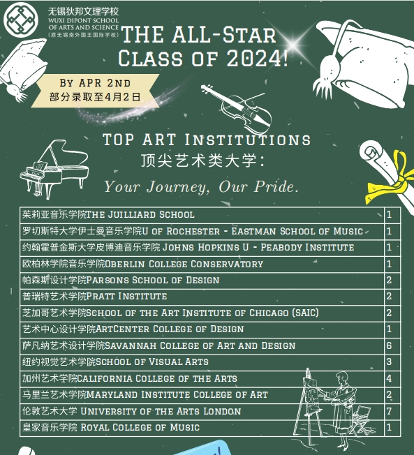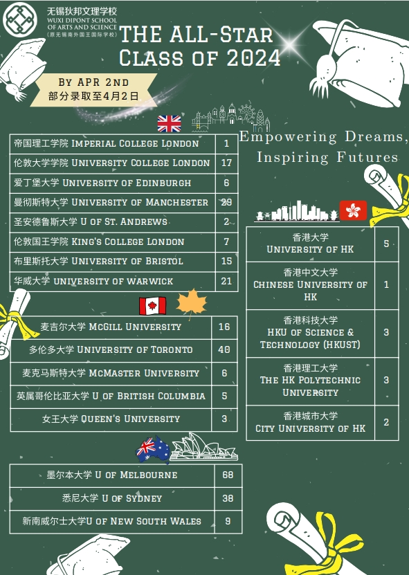 这五年多,无锡狄邦文理学校在探索“以能力为导向”的育人模式上己走出了坚实的路子。“让天赋自由”的管理文化,世界性的“丰富课程”资源,卓越的中外团队等等,保证了孩子们的成长有了更多的学习选择和成长支持。可以看到,无锡狄邦文理的学子面不仅表现出学术卓越,他们更显示了在自主学习、丰富活动的校园文化浸润后形成的关键素养——内心对某一领域的无限兴趣,对探索未知的强烈渴望,以及对人类发展的责任感。正是这些“关键能力”吸引了世界名校招生官的青睐。